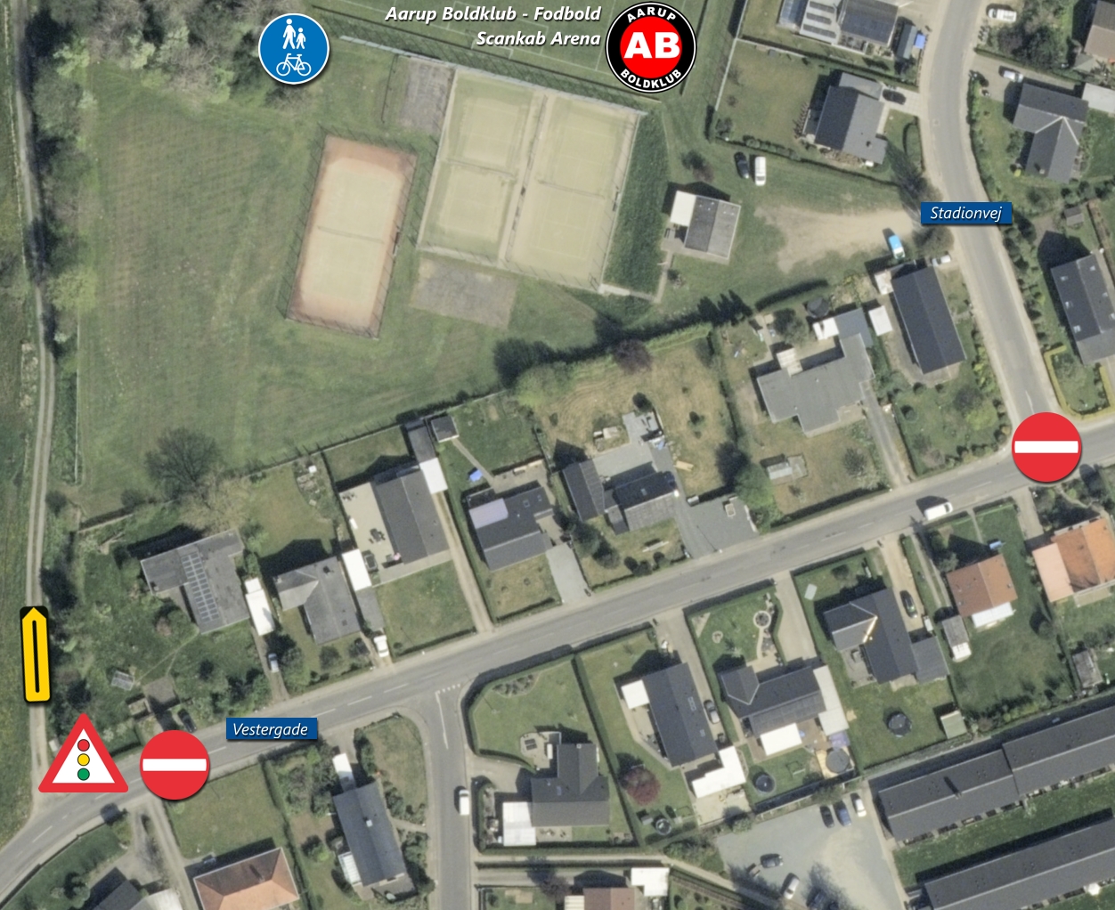 Der er opsat signalanlæg med nedtælling ved Vestergade og ved parkeringspladsen på Stadionvej.